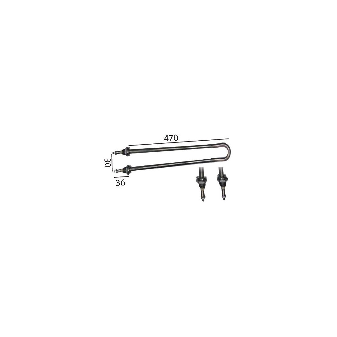Resistance 1800W 230V L 470mm W 33mm M12x1 mounting distance 28mm tube ø 8mm Lid heater
