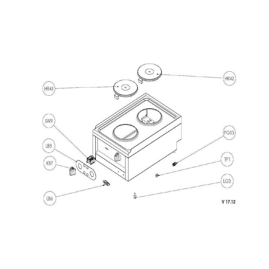 cooking plate ø 180mm 1500W 230V junction 4 terminals edge 4mm 490002 6246.00013.17 Q180 7865.N1.40603.13