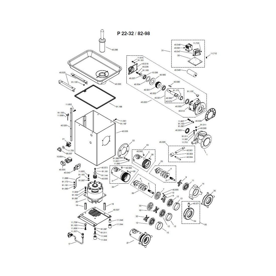 Braher P-22 Stainless Steel Enterprise Grinder Mouth M100 Thread Step 3 40533-1 45026-1