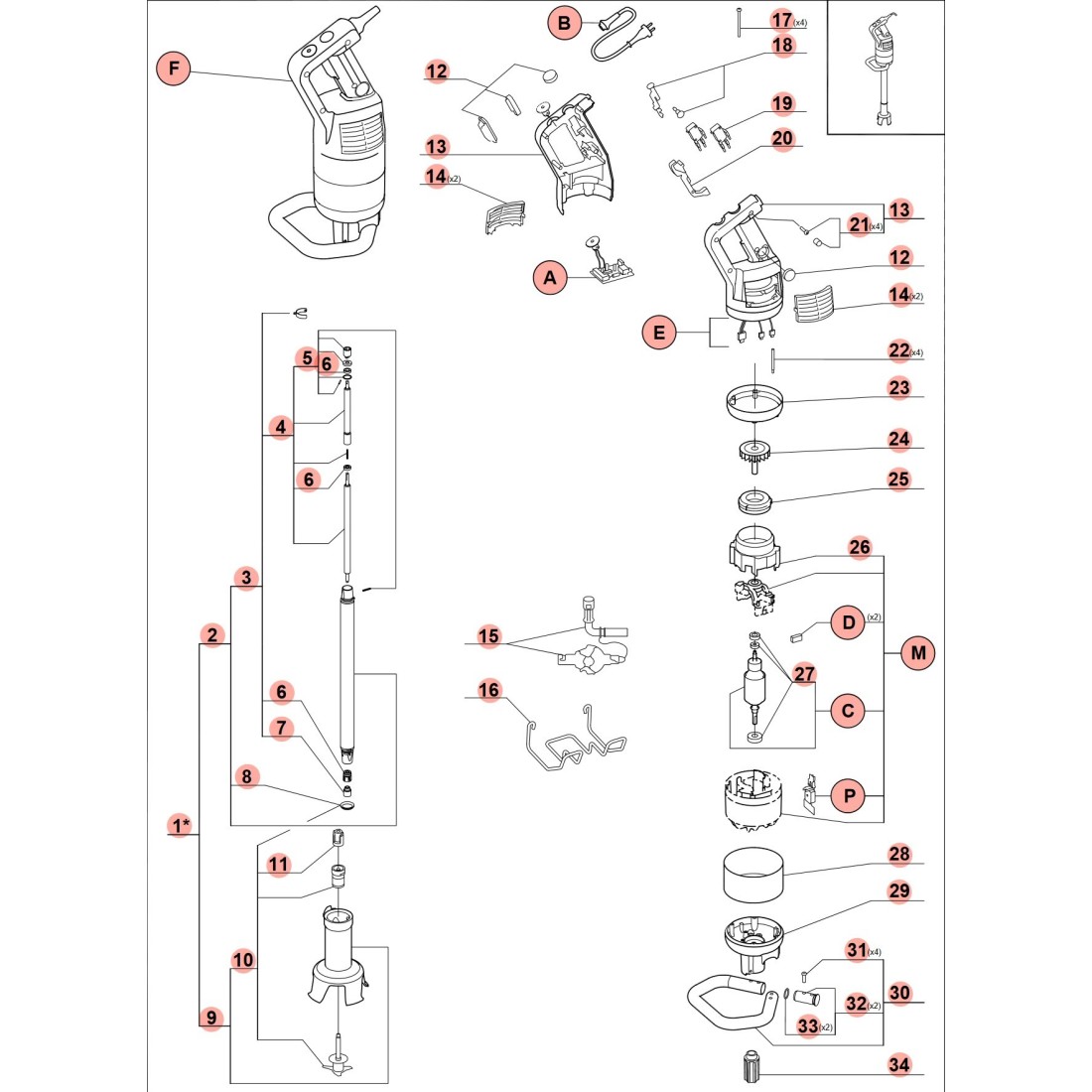 Brazo triturador Robot Coupe MP800A L 620mm 89002 699756