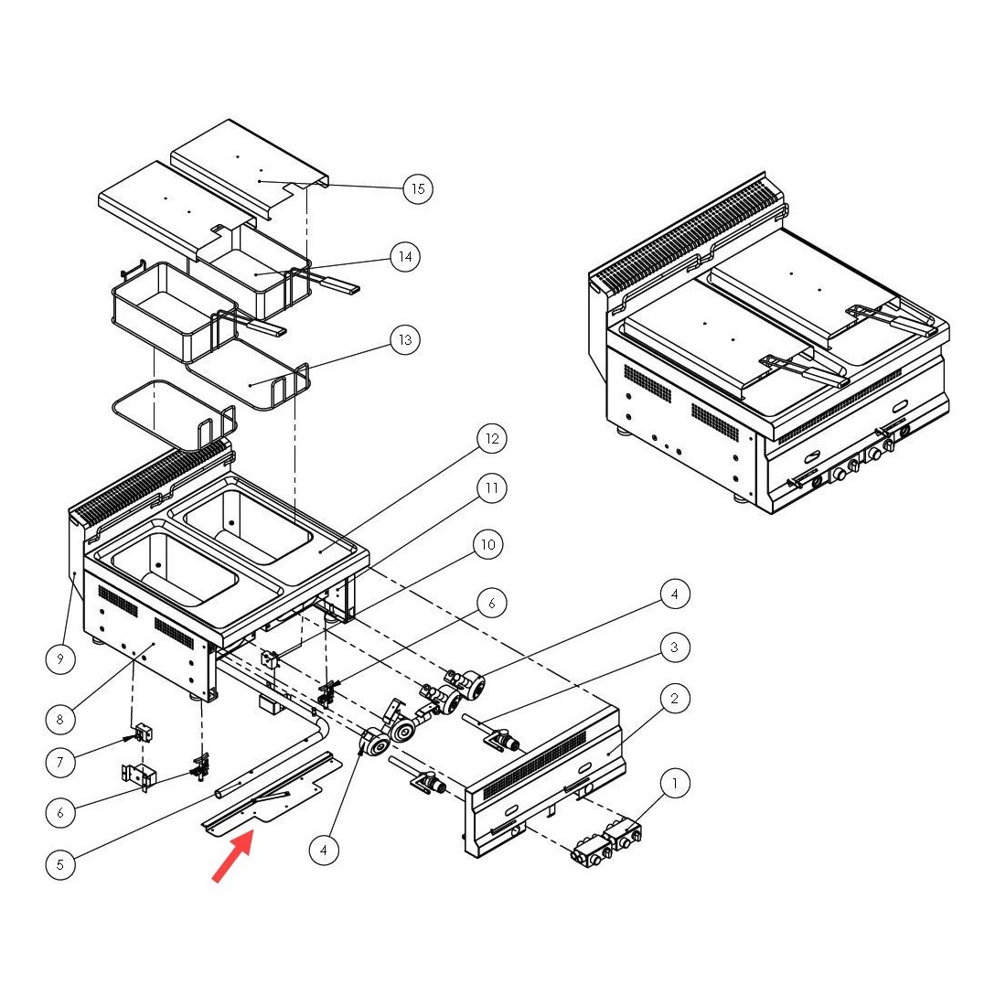 Panel de apoyo Mertik acero inoxidable freidora Turhan serie 600