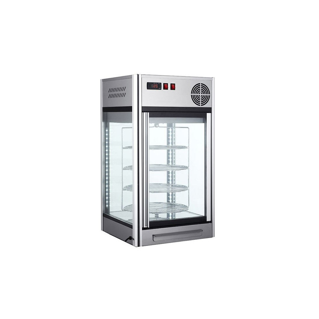 Vitrina refrigerada con sistema rotatorio, ideal para pastelería.