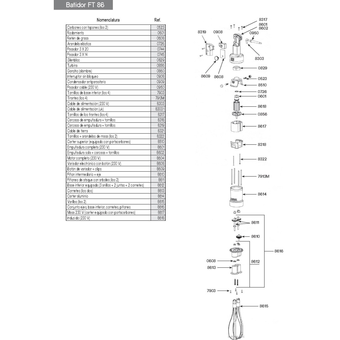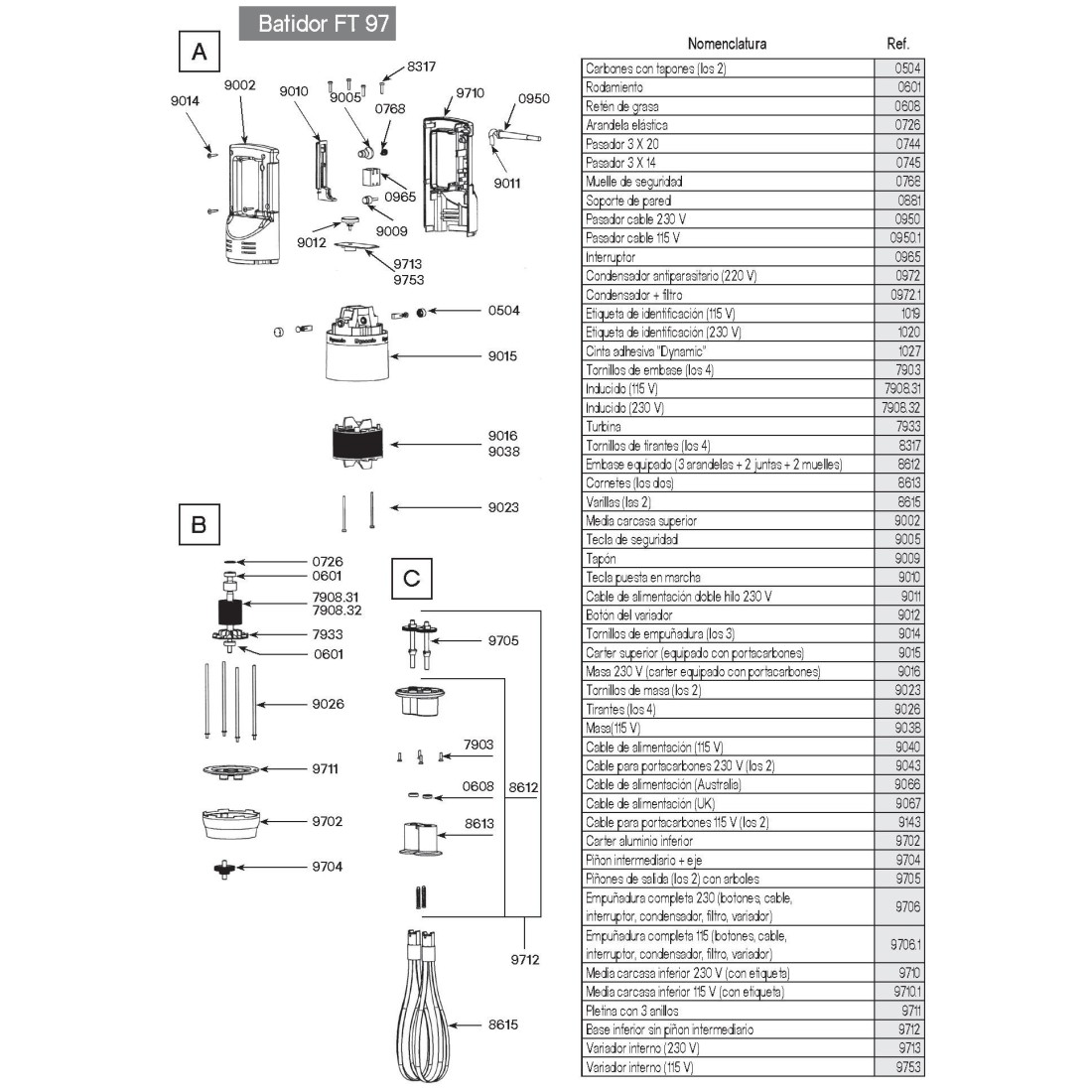 Porte-barres équipé (3 anneaux + 2 joints + 2 cornettes) Dynamic FT86-97F250 MF90 8612