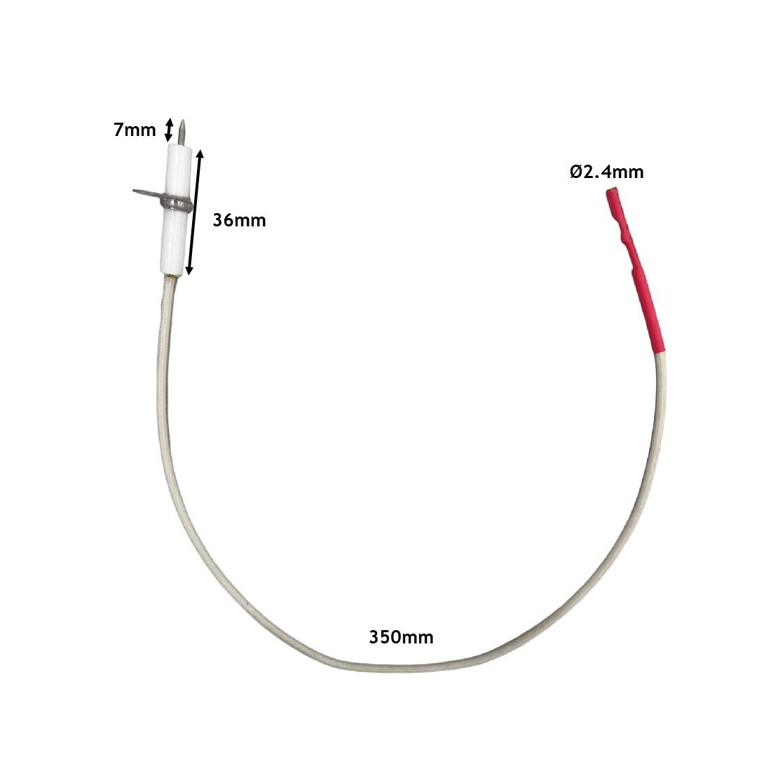 Électrode d'allumage avec bride, longueur de câble 350 mm, connecteur rond ø 2,4 mm