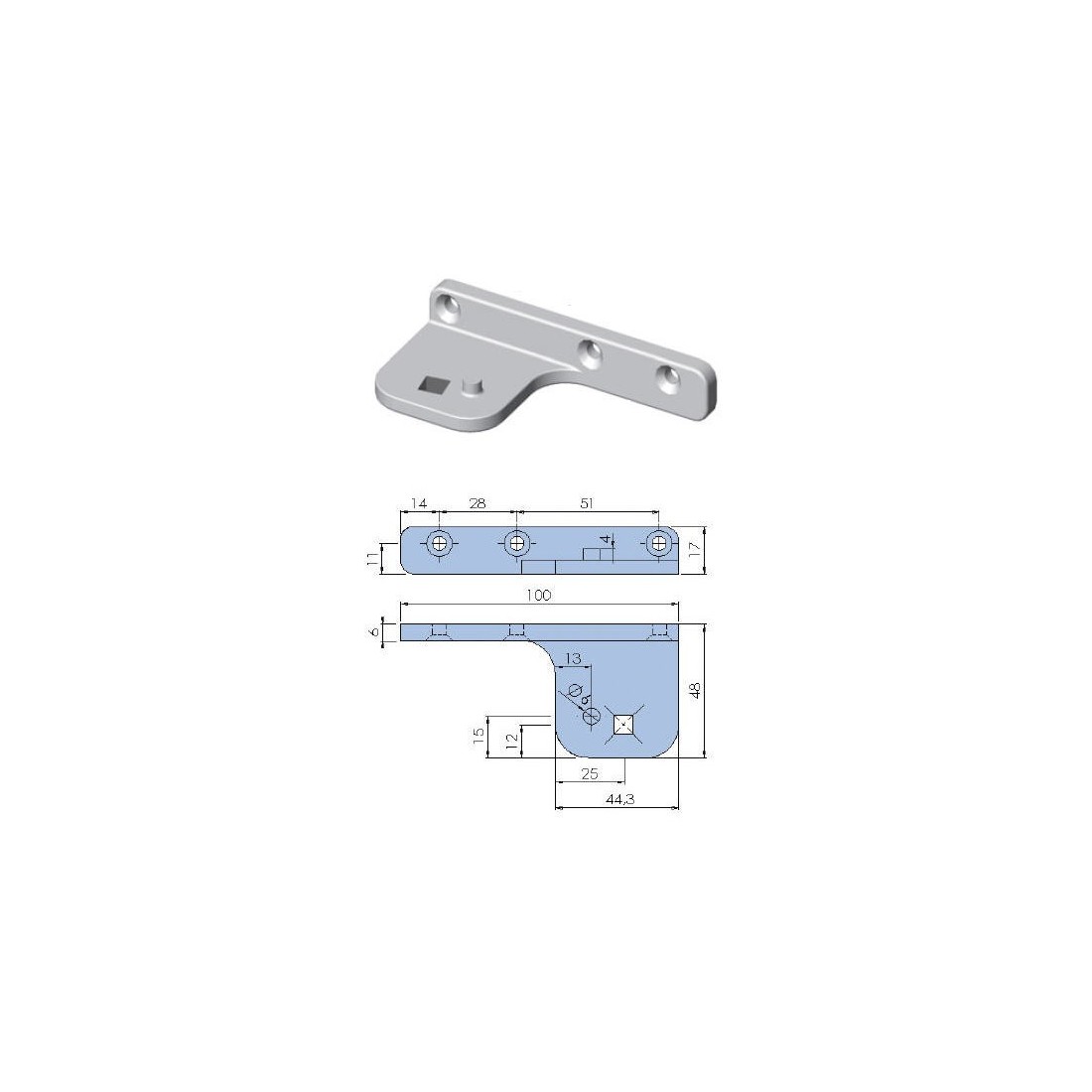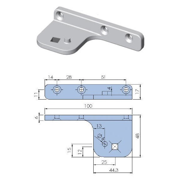 Suporte de dobradiça pivô zamak niquelado fixação quadrada superior direito ou inferior esquerdo 691738
