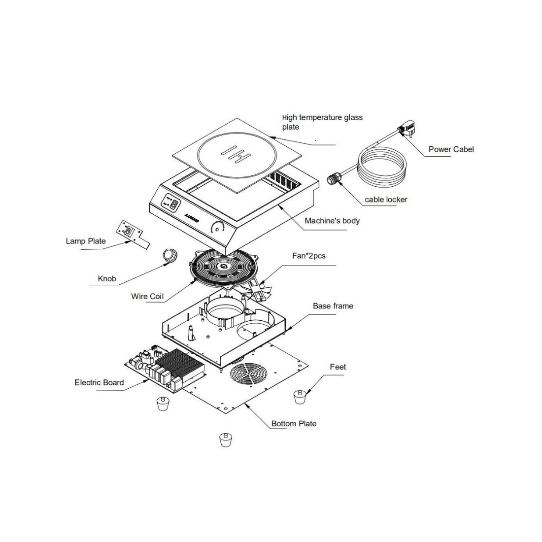 - Área de cozimento: 22 cm de diâmetro, equipada com 21 bandas magnéticas, compatível com uma ampla gama de utensílios (panelas, frigideiras e caçarolas) desde que sejam adequados para indução.