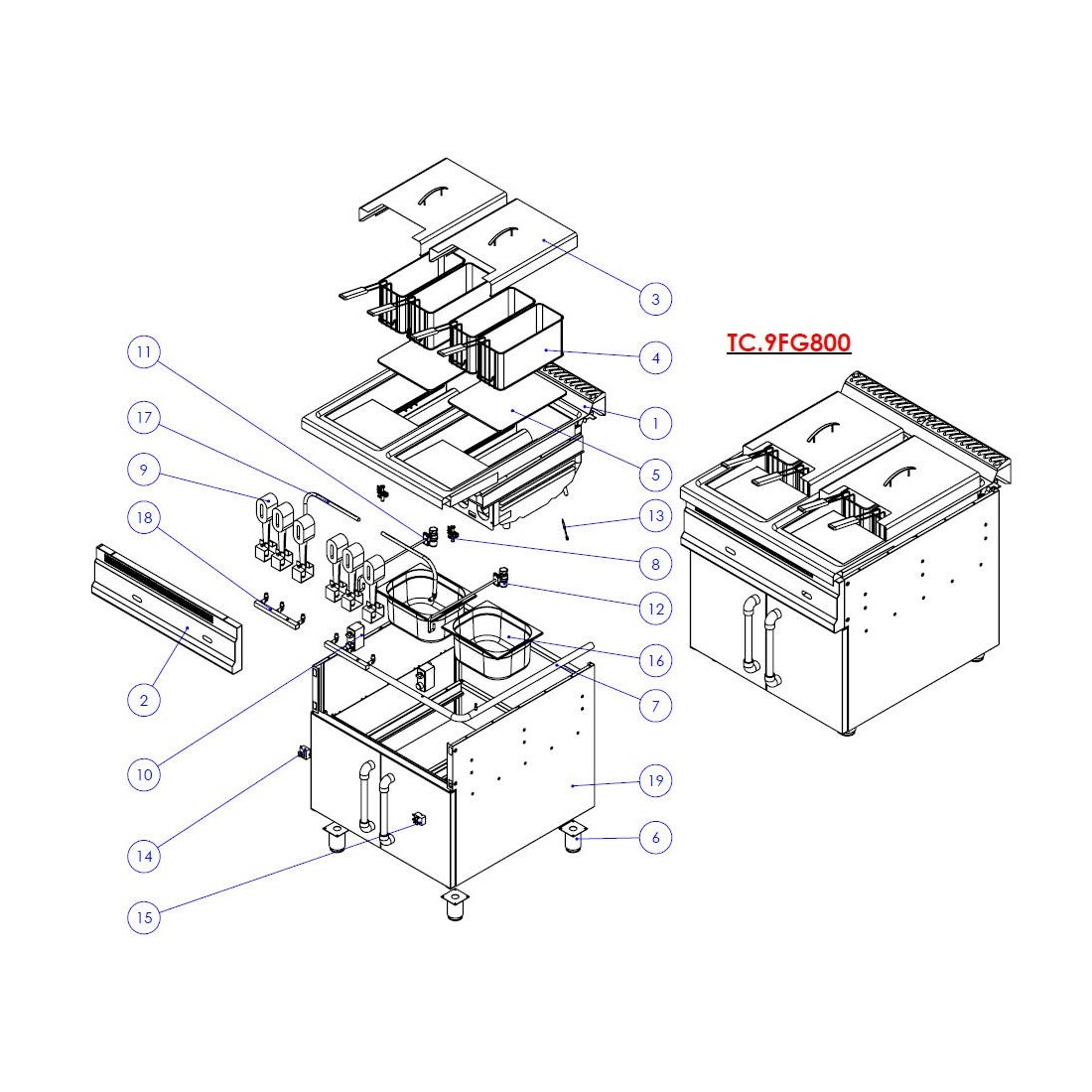 Tubo de alimentação de gás Turhan Fritadeira Série 900 TC.9CF800 Despiece 7