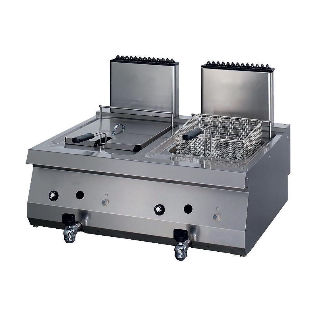 Fritadeira de mesa com dupla cuba para alta capacidade, ideal para fritar grandes quantidades de alimentos de forma eficiente em cozinhas profissionais.
